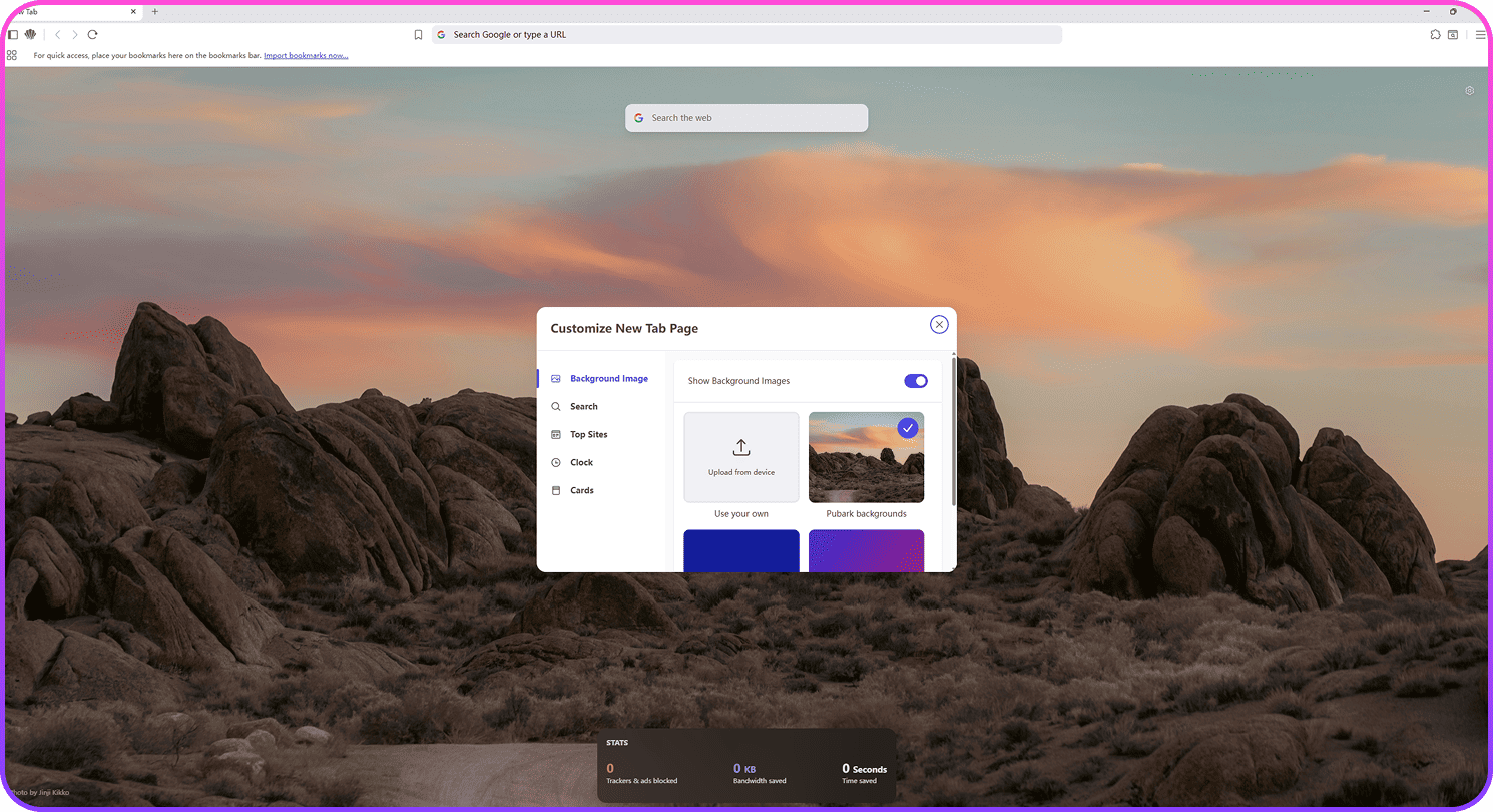 A modern, privacy-first browser that automatically blocks ads, trackers, and intrusive pop-ups by default.