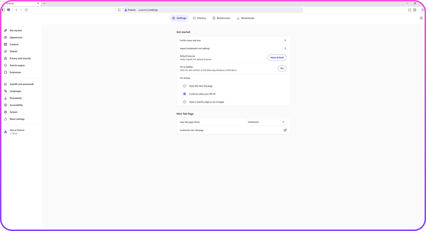 Shields are turned on automatically after installation. You can adjust settings per site by clicking the icon in the address bar.